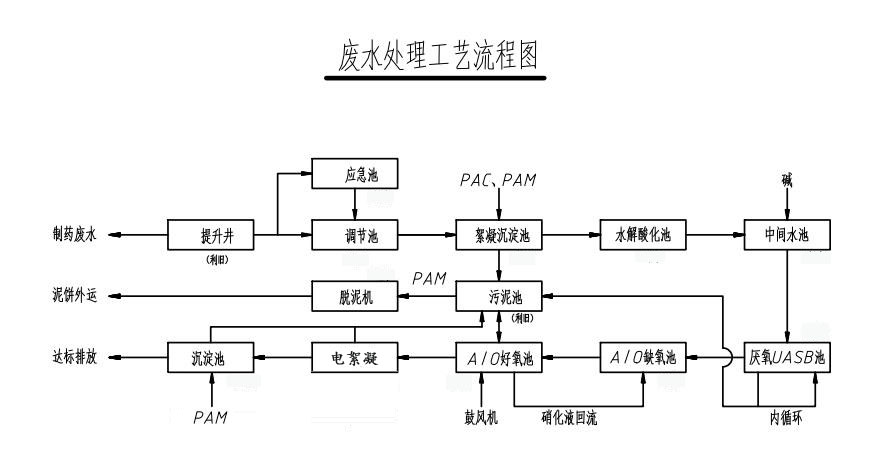 1、電絮凝制藥廢水處理系統(tǒng) 工藝流程圖